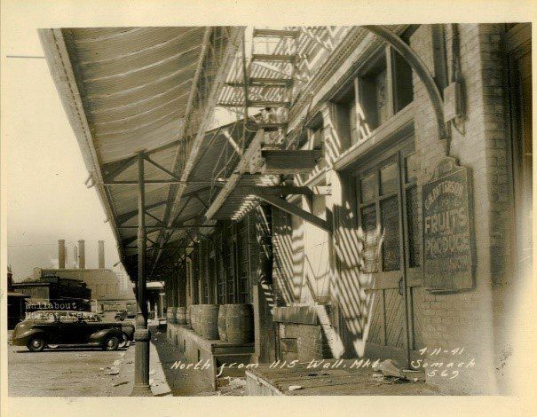 As the United States began to take an active part in World War II, security concerns about the Brooklyn Navy Yard grew. The bustling Wallabout Market, with its shipments coming in via rail, ship, cart, and truck, as well as its foot traffic, posed a problem for the Navy Yard’s security. Additionally, an expected increase in the number of ships that needed to be constructed or repaired necessitated expanding the Navy Yard. These concerns, combined with charges of corruption against one of the Market’s directors in the 1930’s, spelled the end of Wallabout Market. In June 1941, the Market was officially turned over to the US Navy and the buildings were demolished over the following months.