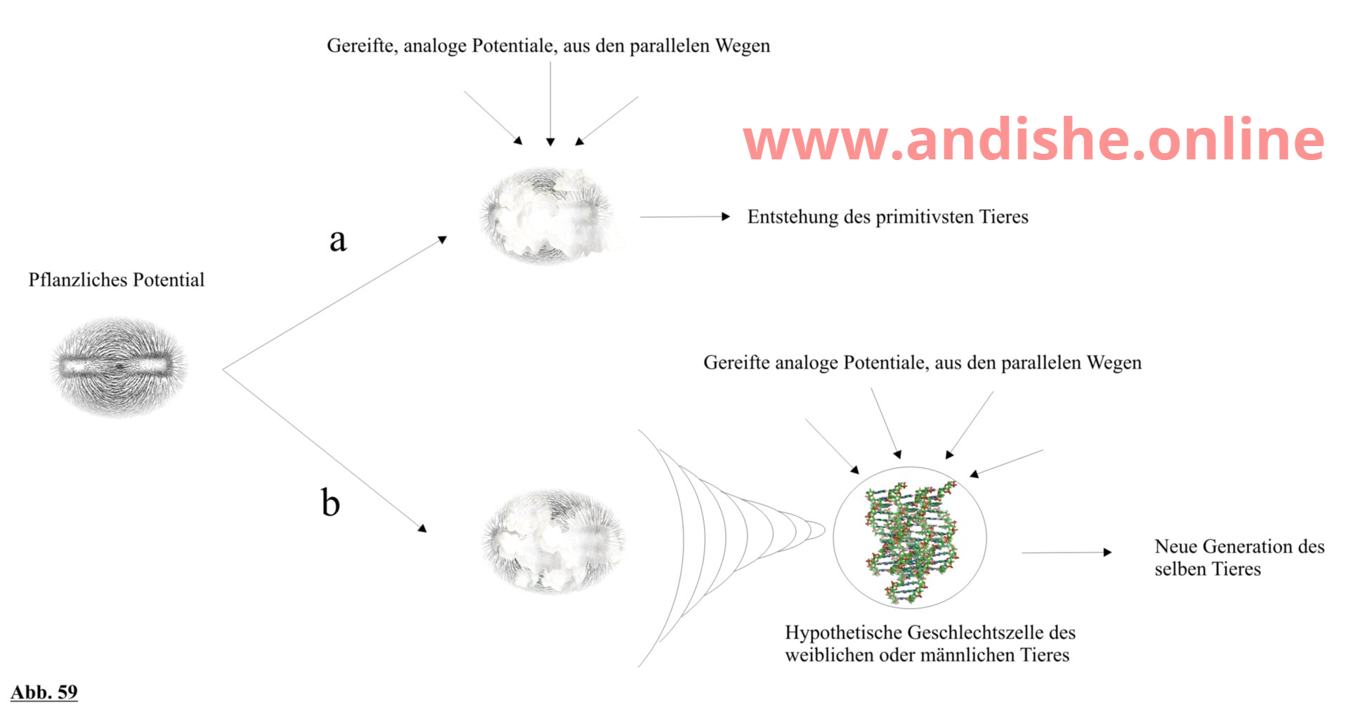 gebildet werden können. Im Grunde genommen kommt nur der Fall b in Frage und Fall a bleibt nur als eine theoretische Möglichkeit bestehen, falls die Wissenschaftler irgendwann eine tierische Lebensform ohne Chromosom finden, die man in die tierische Phase setzen kann.