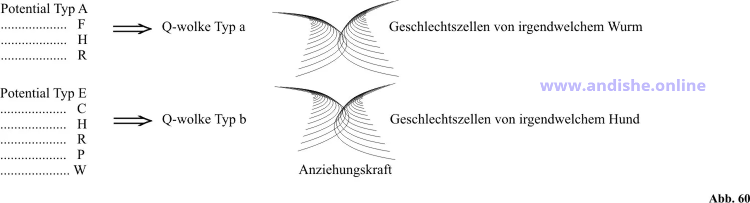 von den für sie geeigneten Chromosomen angezogen werden. Da es sich um die Regeneration erst ab der zweiten Generation einer Tierrasse (Tierstamm) handelt, müssen die genannten Chromosomen Geschlechtschromosome sein. Daraus resultiert die Tatsache, dass die aus der pflanzlichen Phase gereiften Q-wolken