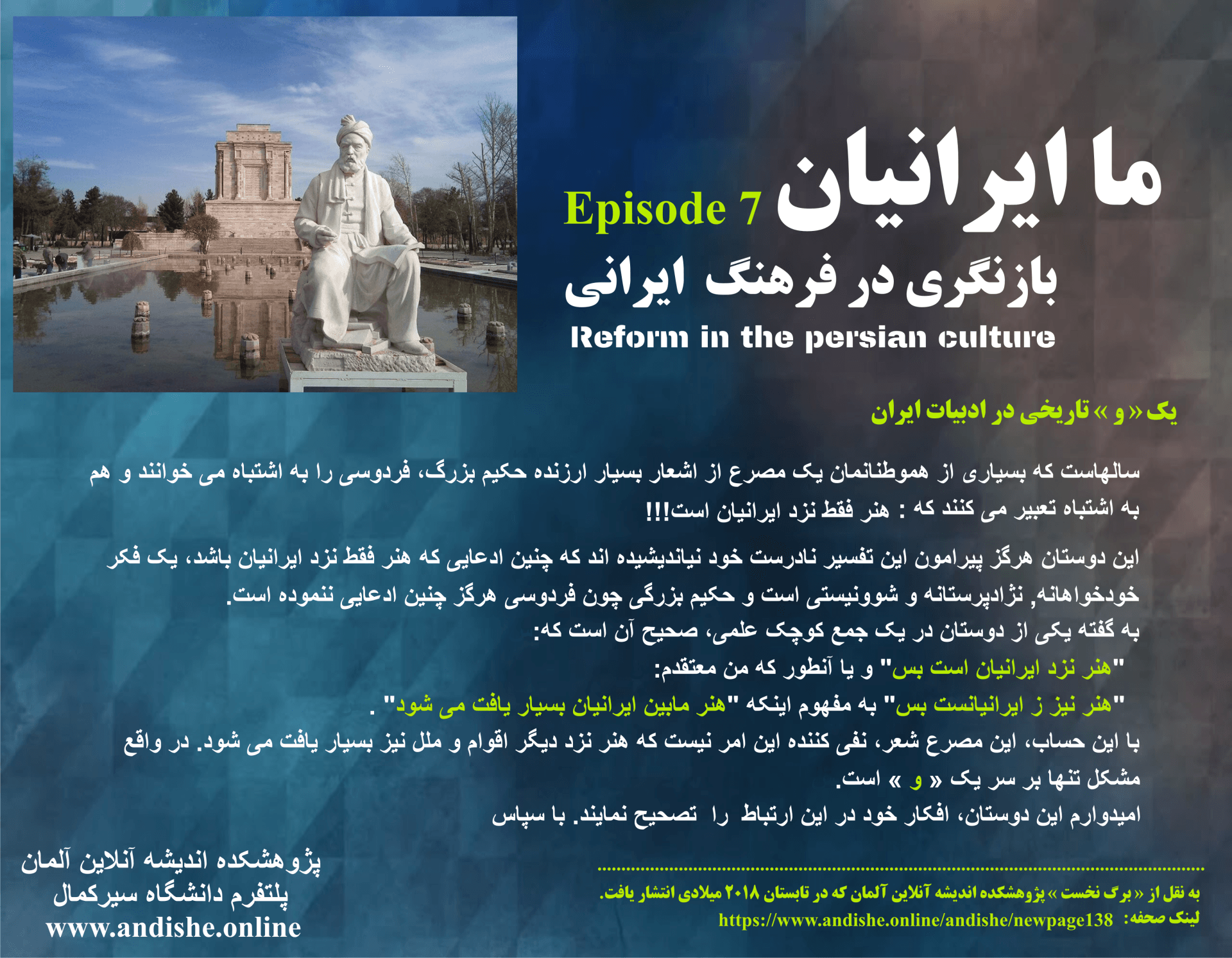 Journal:Andishe / ISSN: 1619-9898
