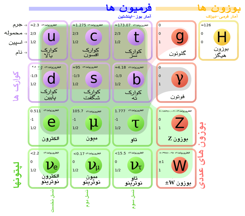 در جدول فوق، همه فرمیونها، بوزونها و بوزون هیکز و همه اطلاعات لازم در مورد اسپین، بار و جرم هر کدام از آنها قابل مشاهده است . در اینجا فقط باید دانست که آنتی الکترون، پوزیترون نامیده شده است و نزد ما در تعریف و تشریح نحوه ایجاد جهان هستی، هر دوی این ذرات ازاهمیت ویژه ای برخوردار می باشند، زیرا در ایجاد آن، نقش اصلی را ایفا می نمایند. گذشته از آن، هر پادذره با یک پیشوند «آنتی»