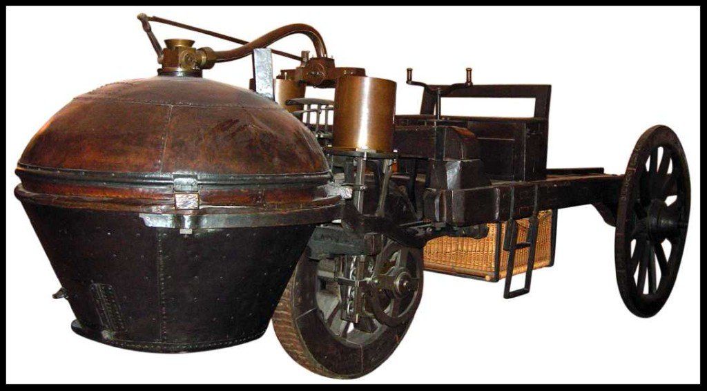 گفته می شود اولین ایده اتومبیل را شخصی به نام پدر فردیناند فربیست بلژیکی در سال ۱۶۷۸ ارائه داد وطراحی نمود. این ماشین ابتدایی با ۶۵ سانت طول خود با بخار کار می کرد که در واقع بیشتر به یک اسباب بازی شبیه بود تا یک وسیله حقیقی. پس از آن قریب به یک قرن بعد، در سال ۱۷۶۷ نوع قابل قبول تری از اتومبیل که قادر به حمل چهار سرنشین و دو نفر به عنوان راننده و کمک راننده بود توسط نیکلاس جوزف کان فرانسوی طراحی و ساخته شد. سرعت حرکت این اتومبیل را تقریبن ۹ کیلومتر در ساعت تخمین می زنند. س