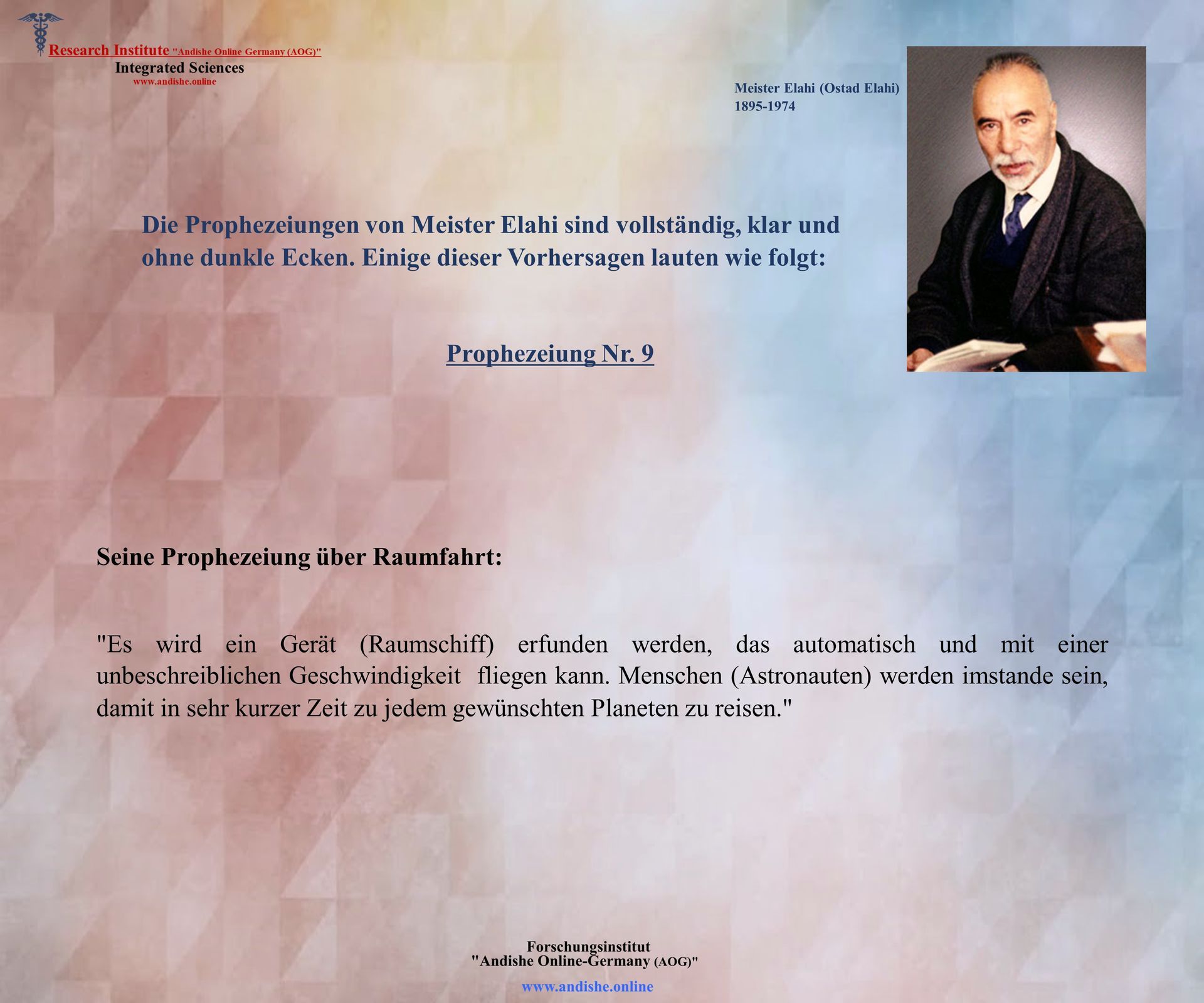 Anlässlich des 126. Geburtstags von Meister Noor Ali Elahi (1895 bis 1974)