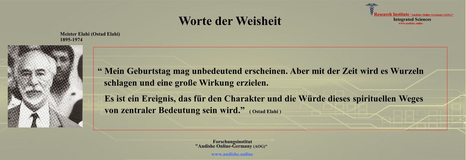 Anlässlich des 128. Geburtstags von Meister Noor Ali Elahi (1895 bis 1974)