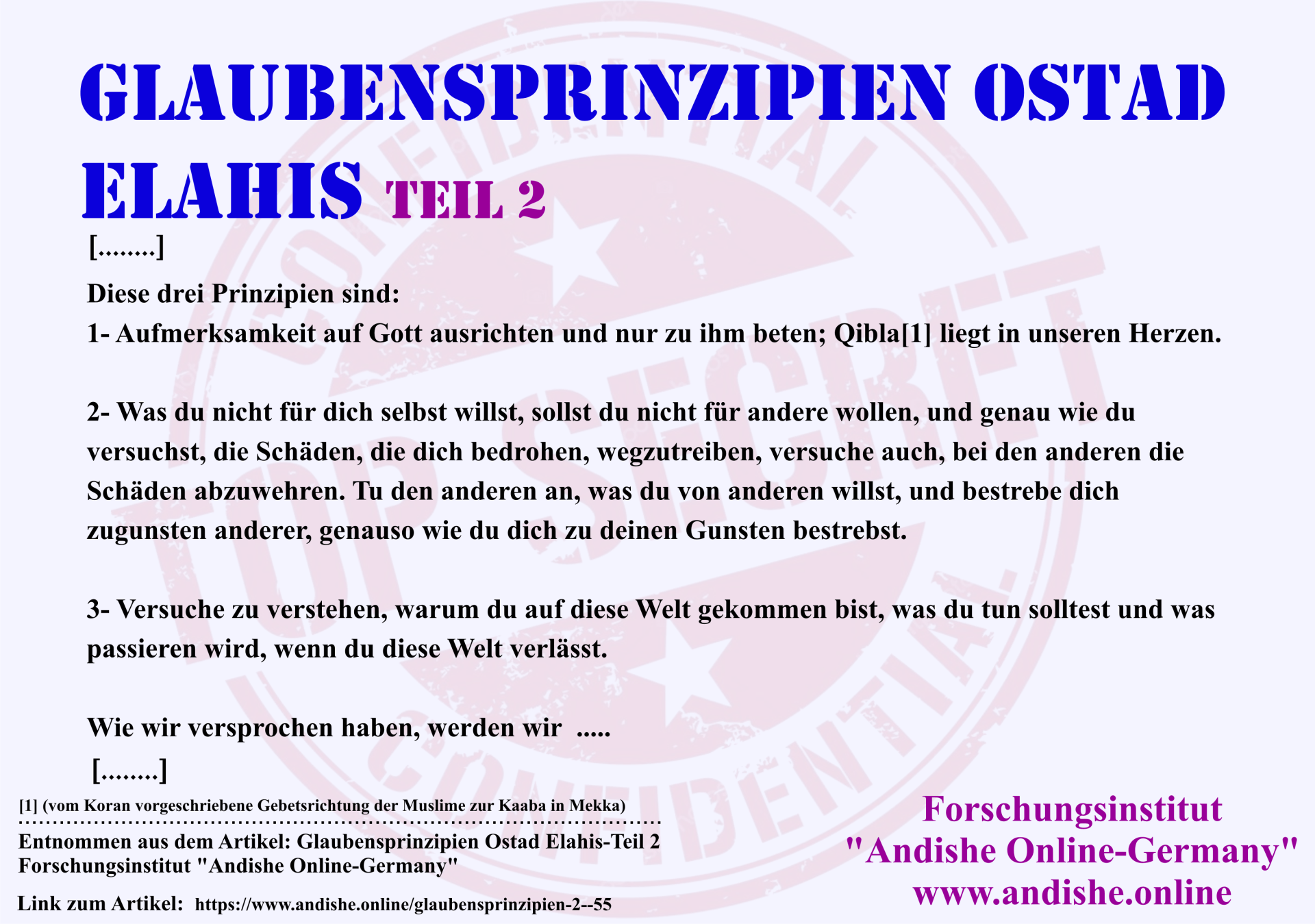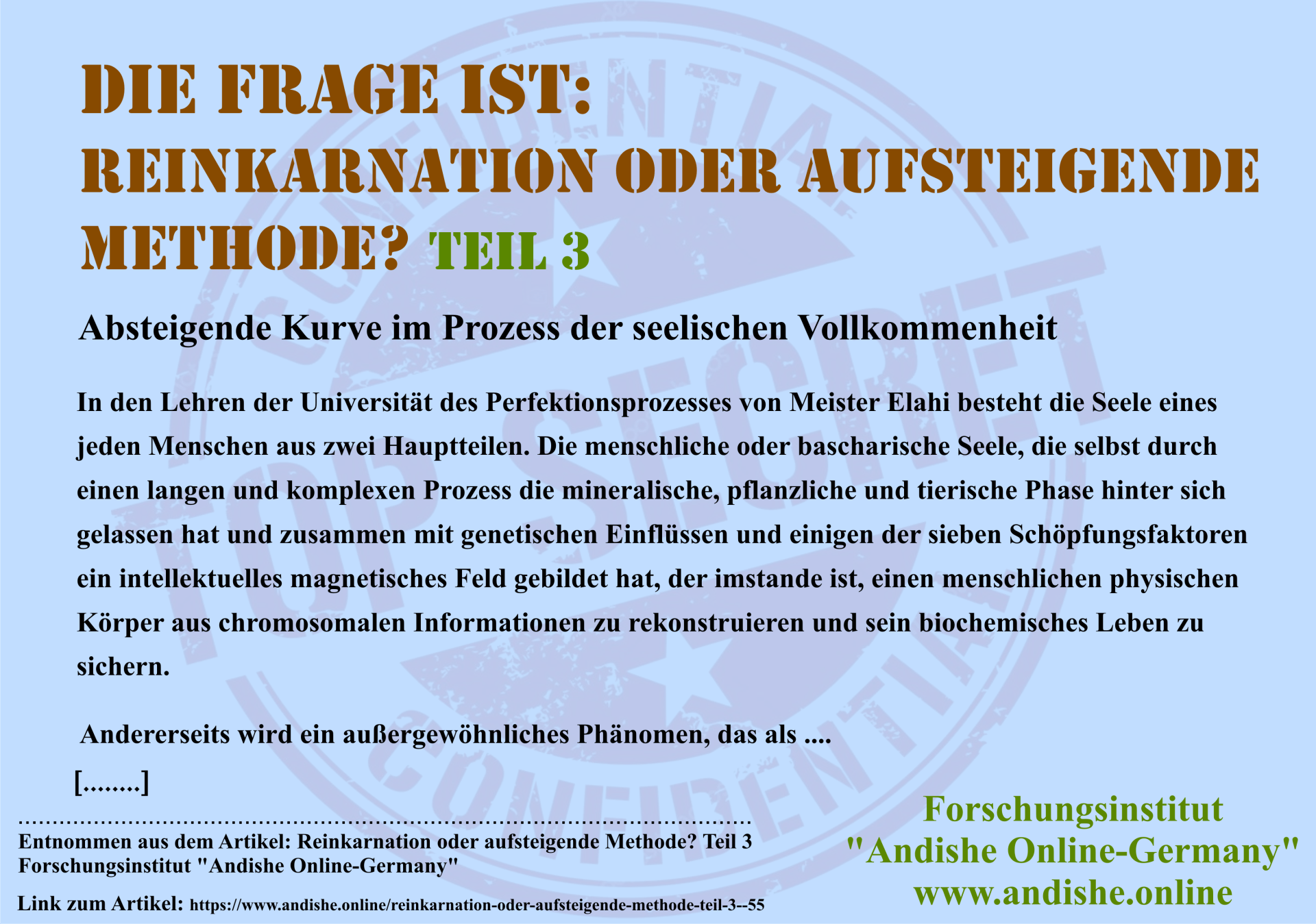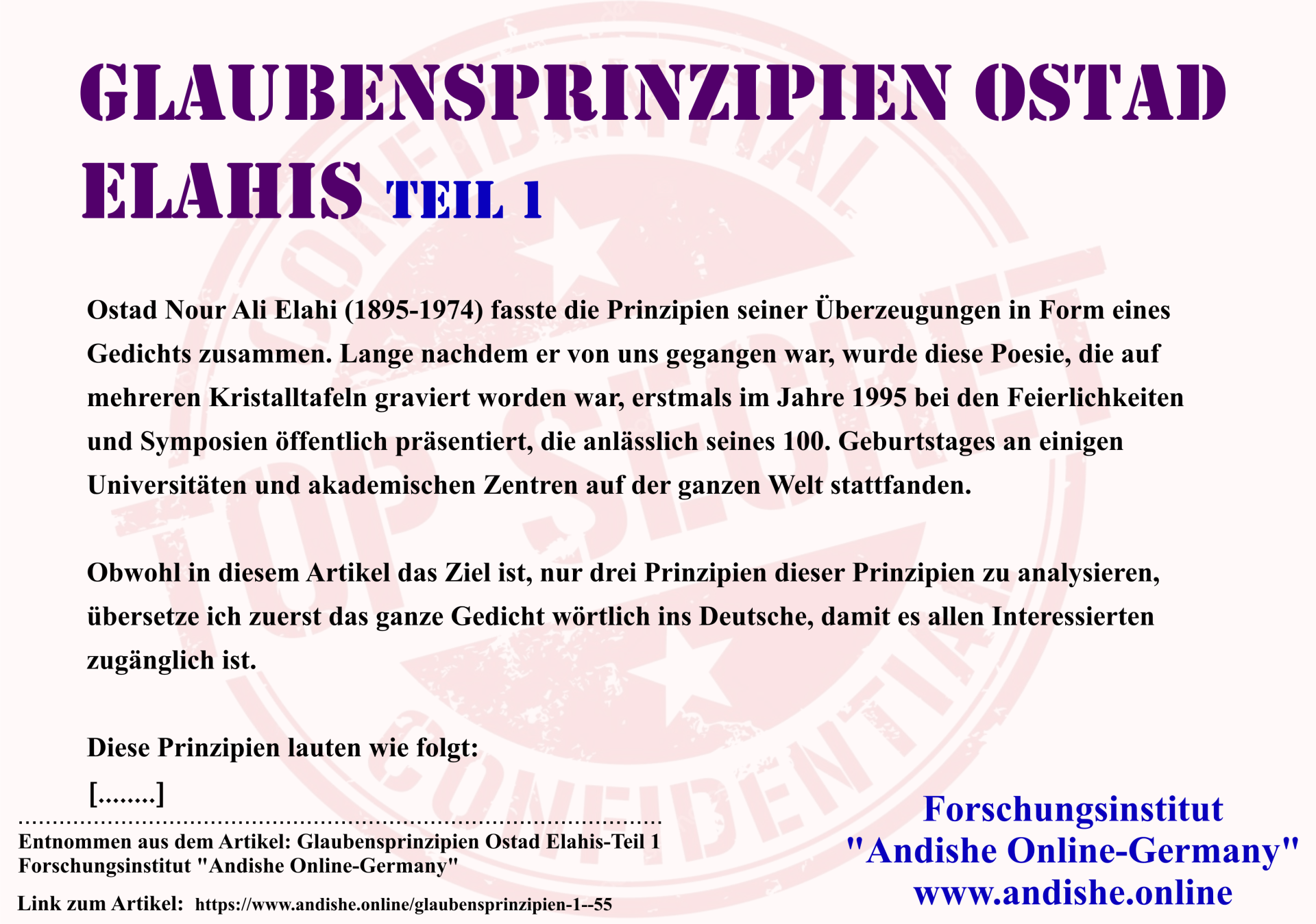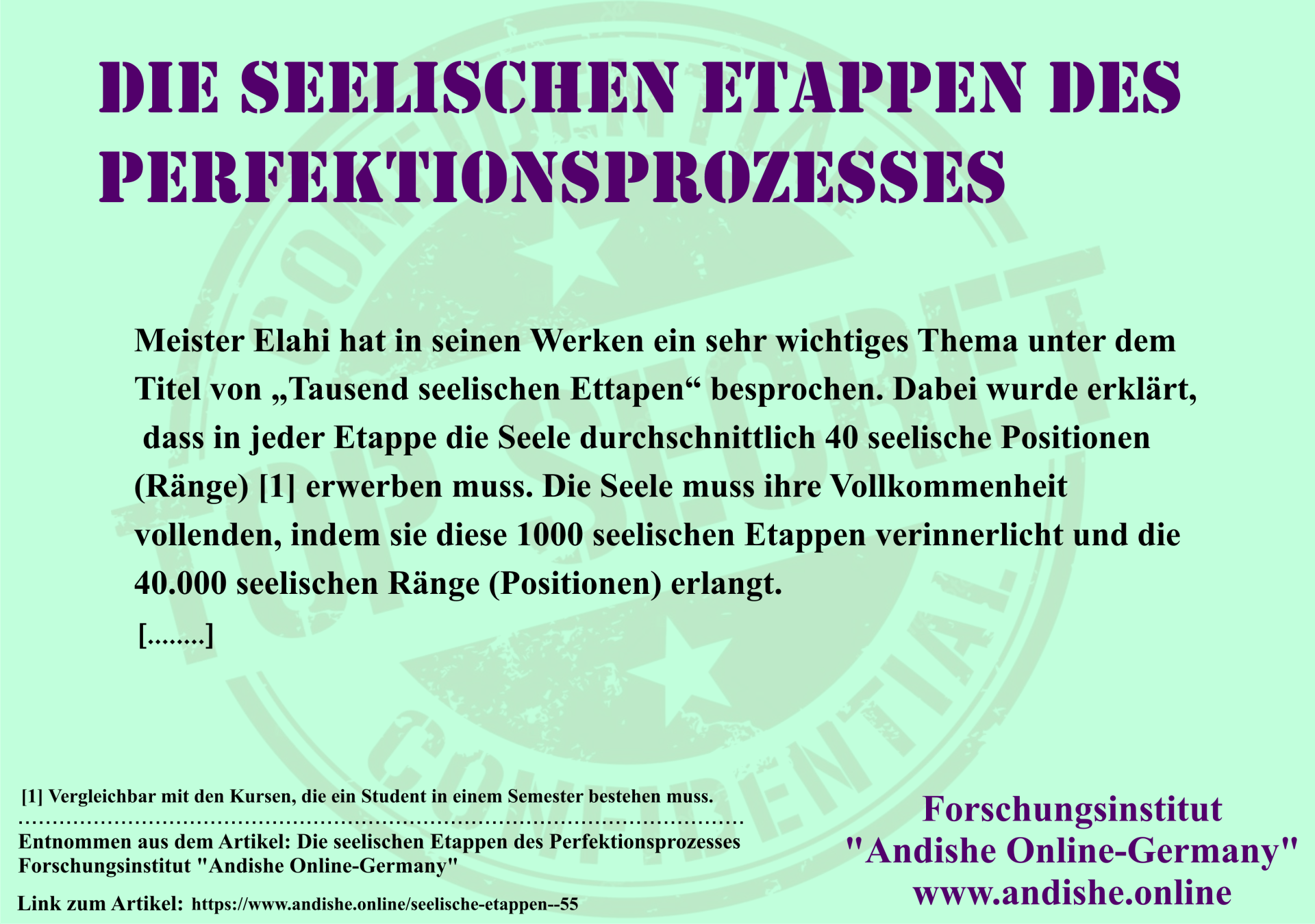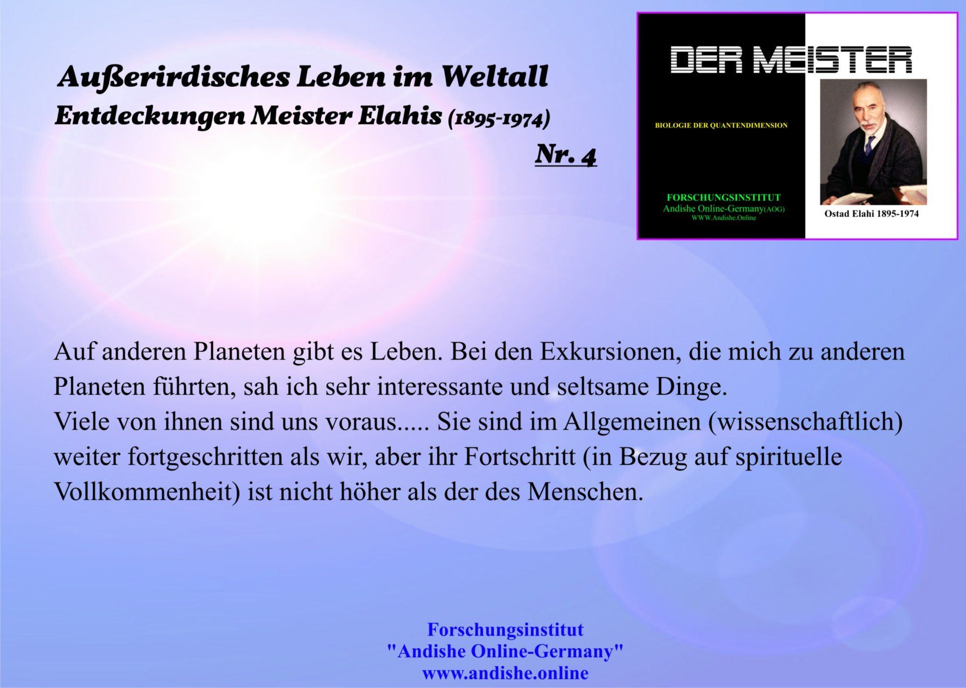 der Philosophie, Psychologie und Metaphysik, die auf den Lehren von Meister Elahi basieren.